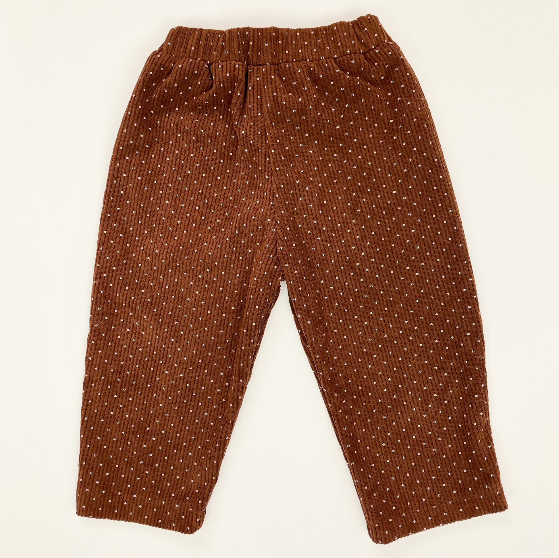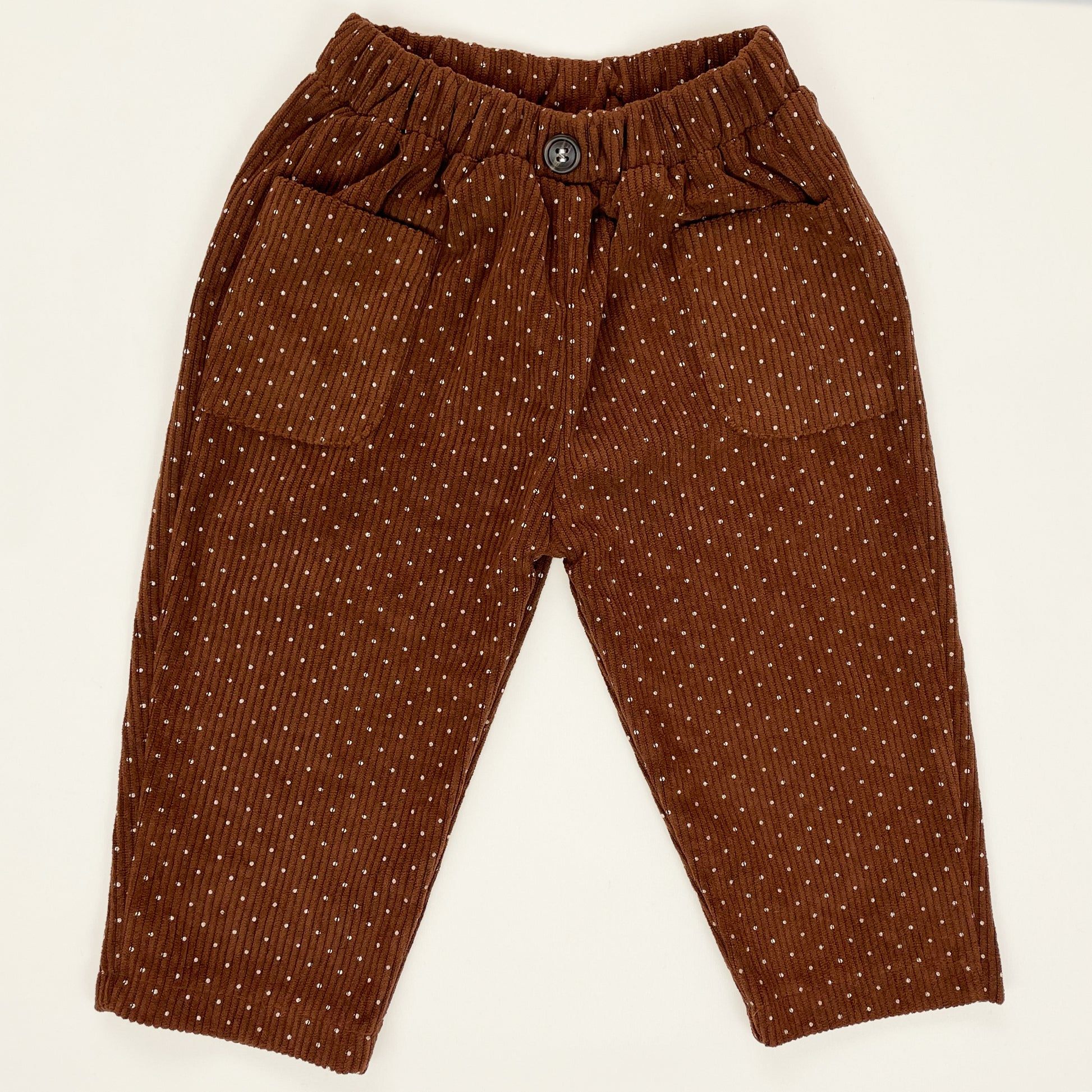 Our unisex relaxed fit polka dot corduroys are made for easy dressing. Also available in Cream here