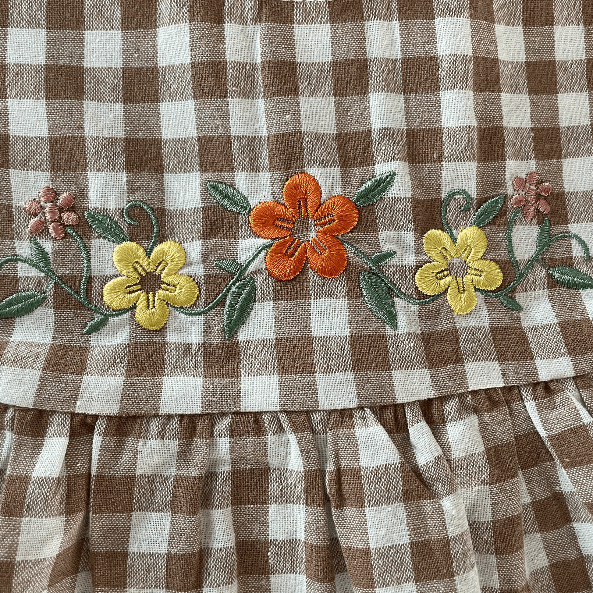 - Mocha brown and white woven gingham pattern, give this set vintage charm