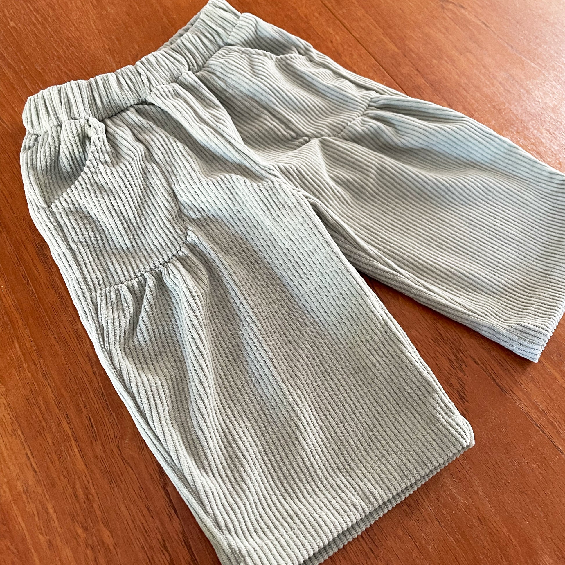 Keep your little one looking effortlessly stylish with these Sage Pocket Corduroy Trousers. Designed with a soft, stretchy elasticated waist, they’re perfect for quick dressing and growing bodies. The straight, wide leg offers comfy movement, while the cute gathered detail around the hip pockets adds playful charm.
