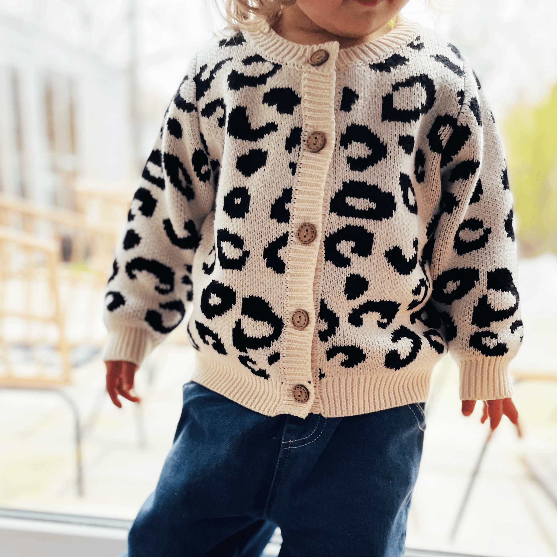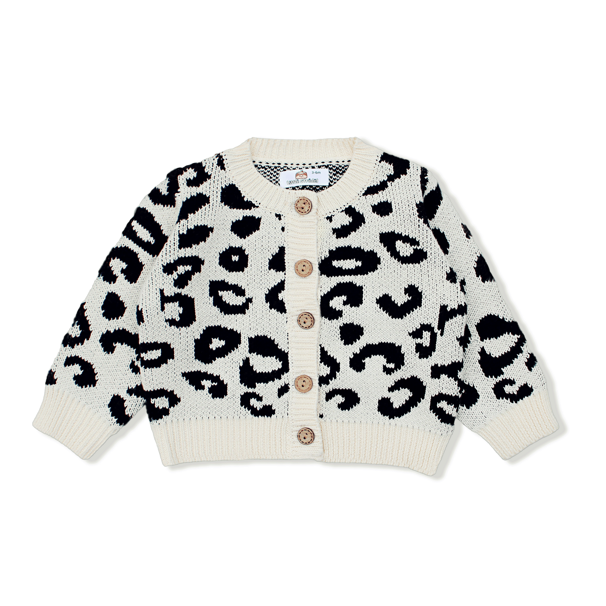 Introducing our leopard jacquard knit cardigan. Made from 100% soft cotton yarn. It's super warm. Perfect for layering up in colder weather and will be a handy transitional jacket as we move into Spring.